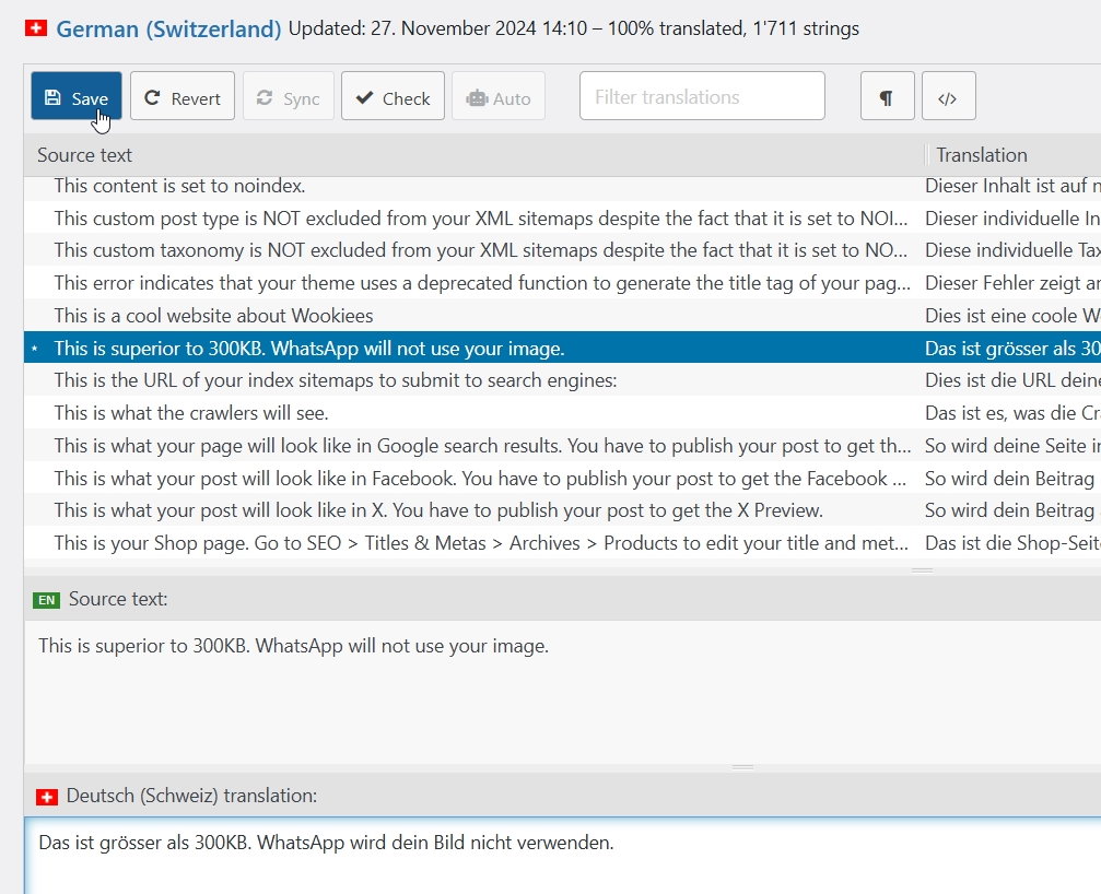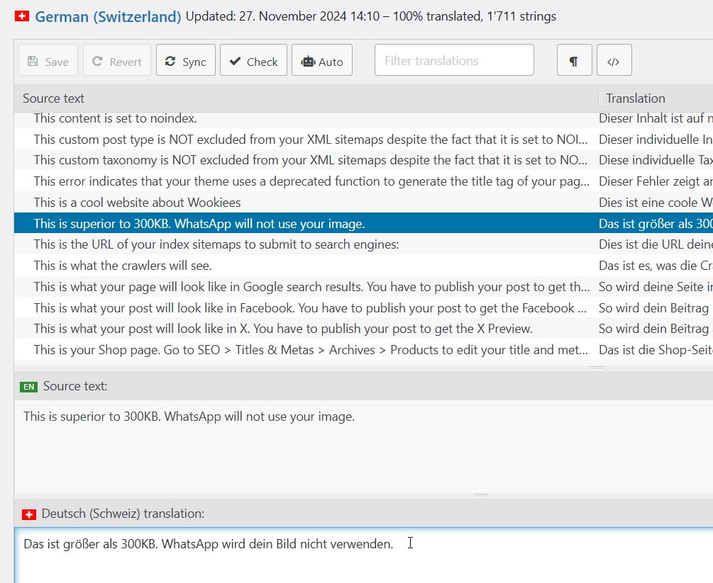Mit Loco Translate kannst du diese Texte in die Sprache übersetzen, die du benötigst. Wir zeigen dir wie.