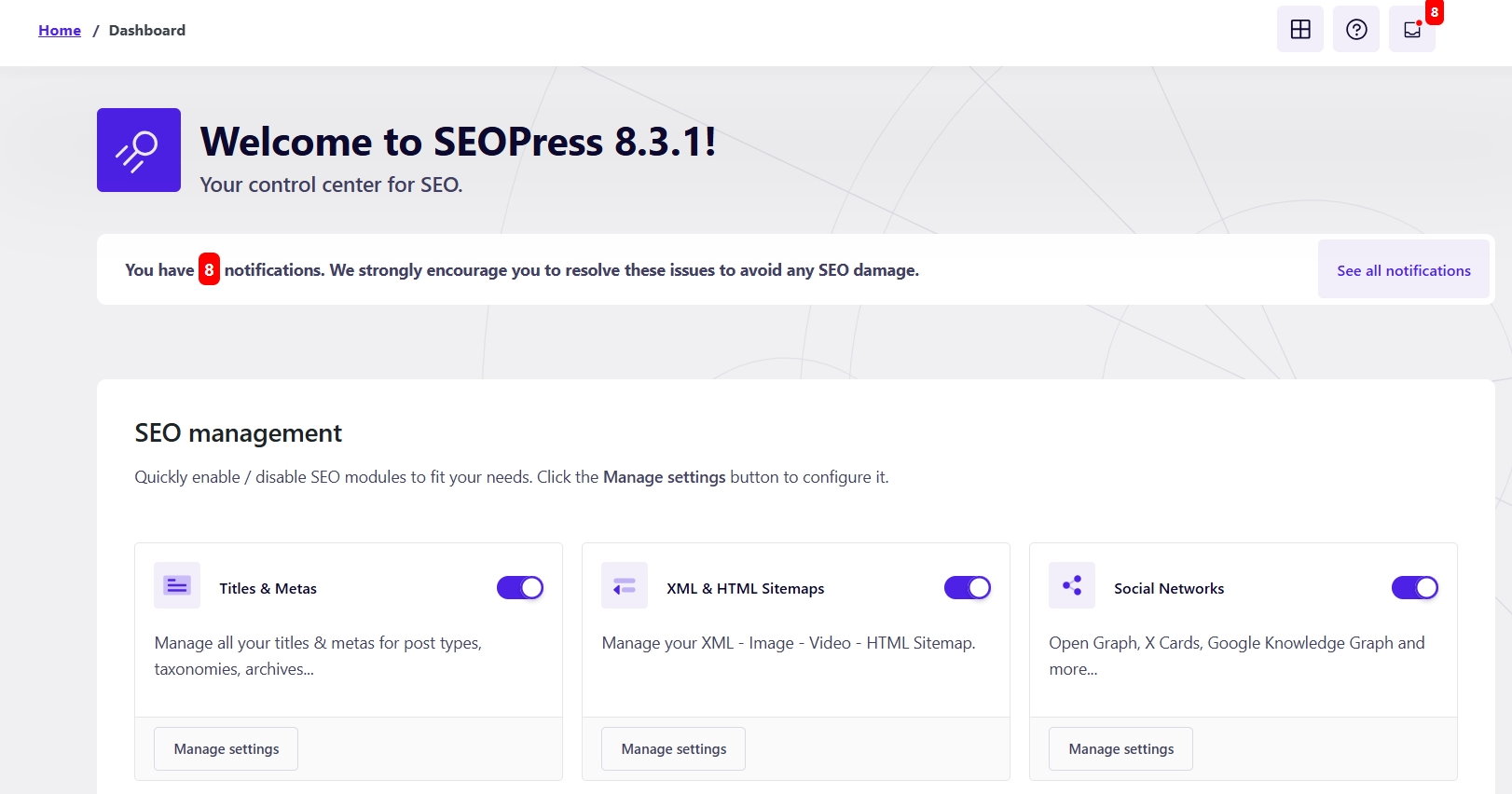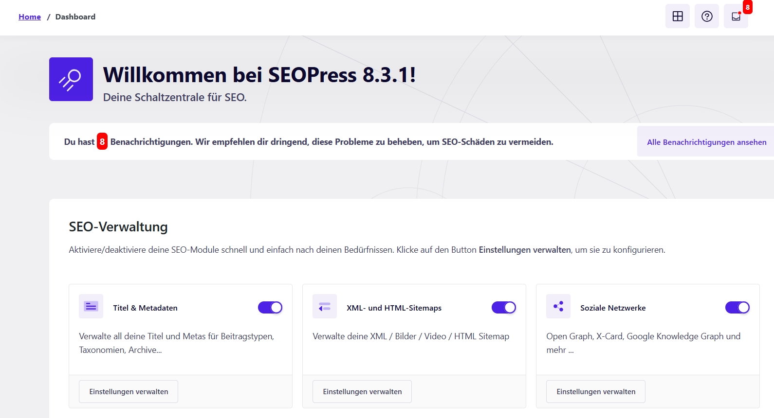 Wir haben in einem früheren Beitrag über das SEO-Plugin SEOPress geschrieben. Dabei ist dir sicher aufgefallen, dass das Dashboard nur in English lesbar war: